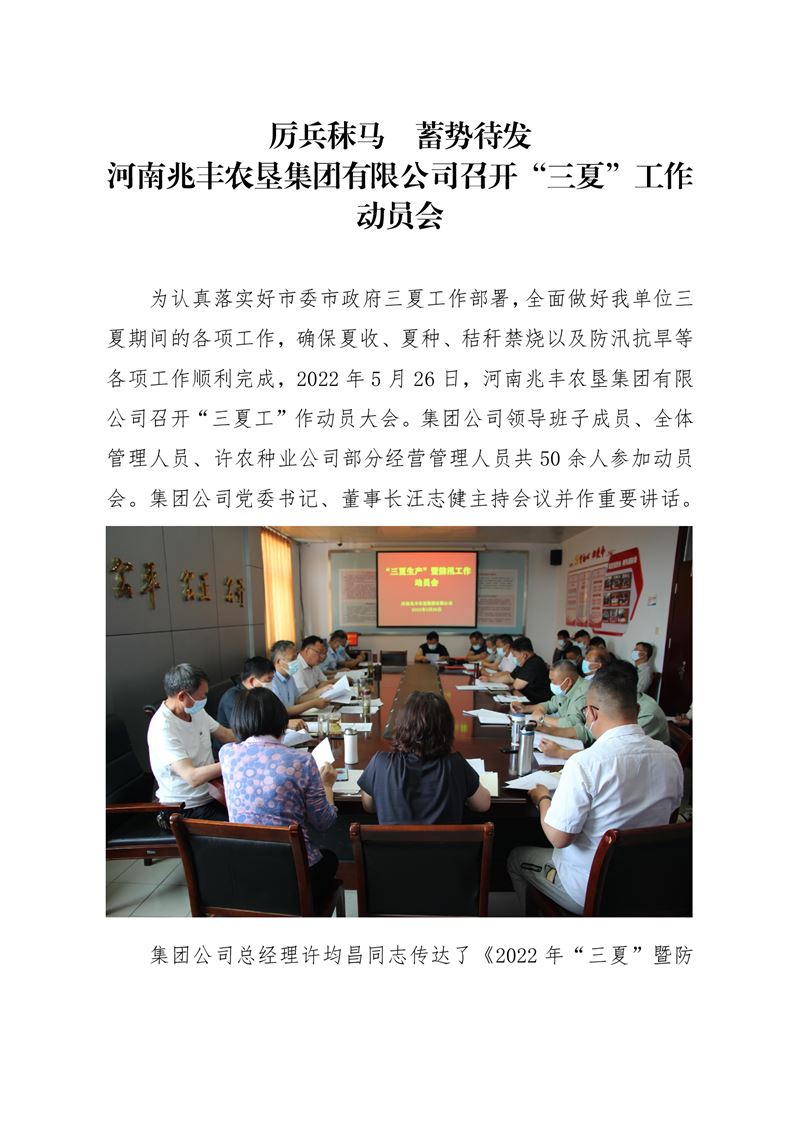 · 厲兵秣馬 蓄勢待發 河南兆豐農墾集團有限公司召開“三夏”工作動員會