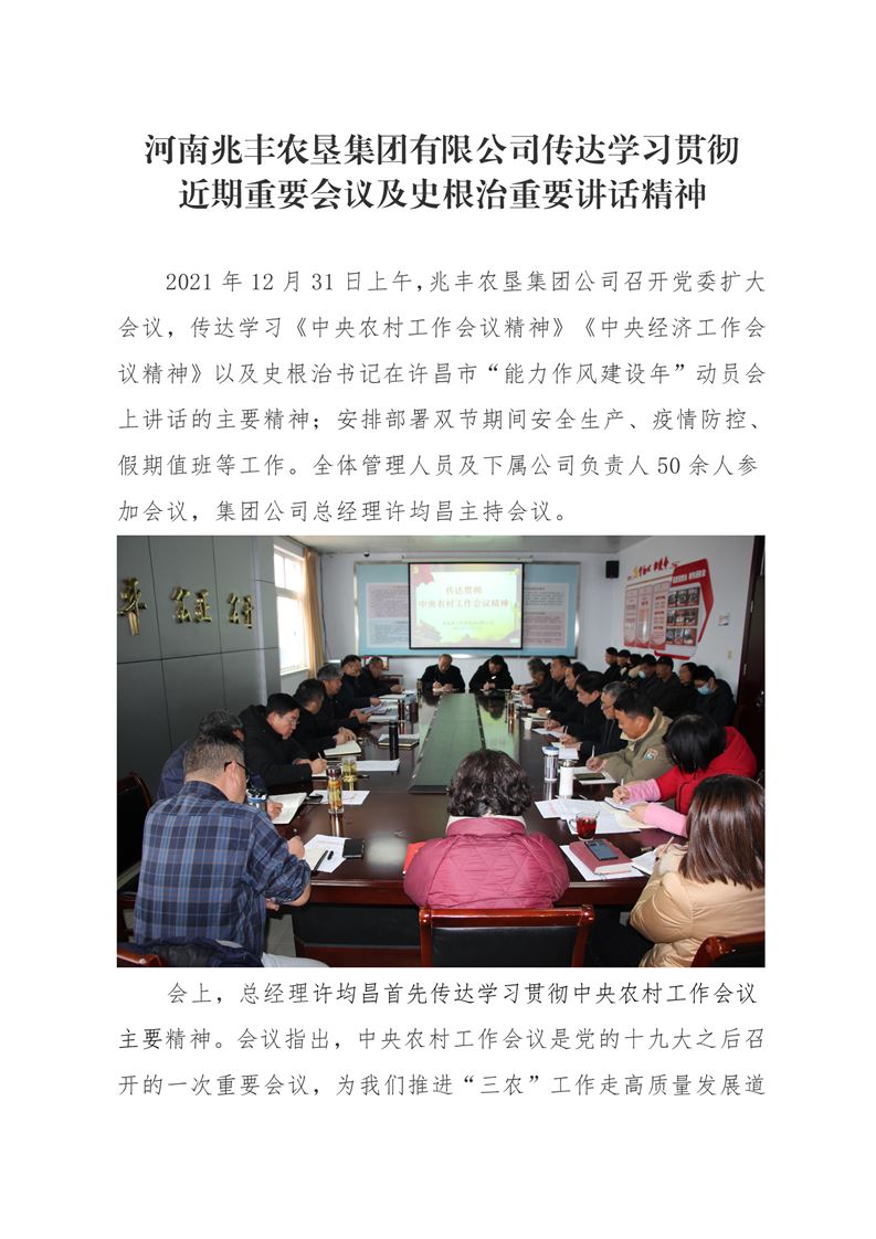 · 河南兆豐農(nóng)墾集團(tuán)有限公司 傳達(dá)學(xué)習(xí)貫徹 近期重要會(huì)議及史根治重要講話精神