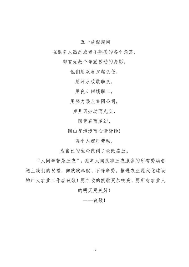 · 河南兆豐農墾集團有限公司 五一放假期間用勞動服務踐行對職工的承諾