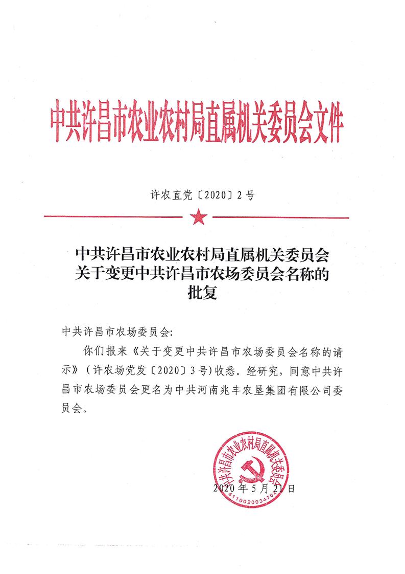 · 關(guān)于變更中共許昌市農(nóng)場委員會名稱的批復(fù)