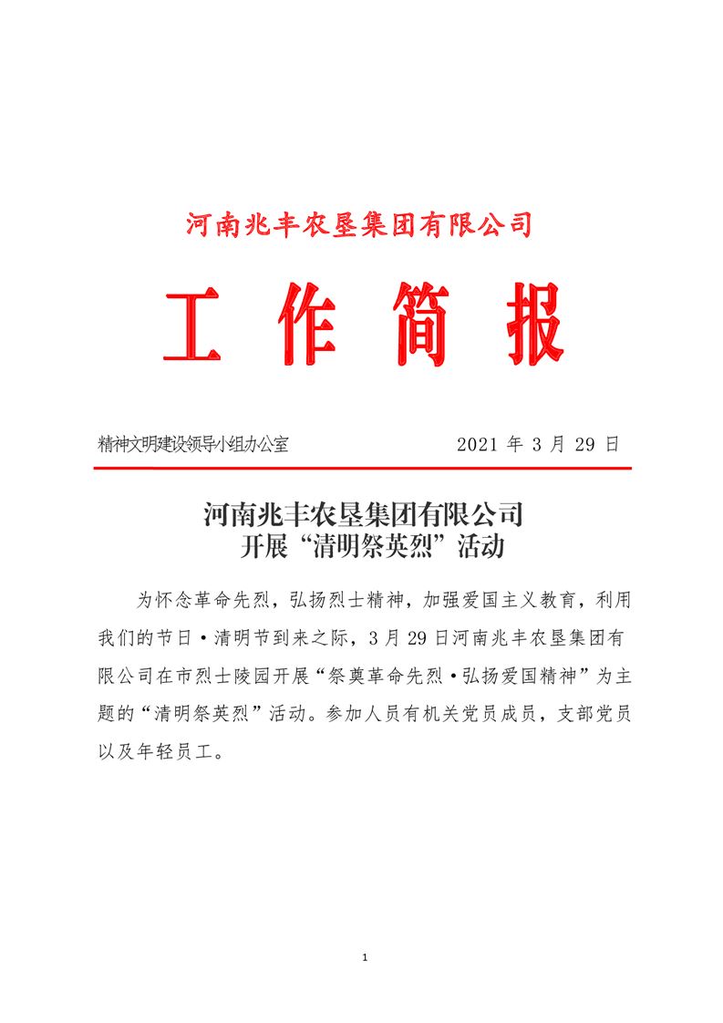 · 河南兆豐農墾集團有限公司 開展“清明祭英烈”活動