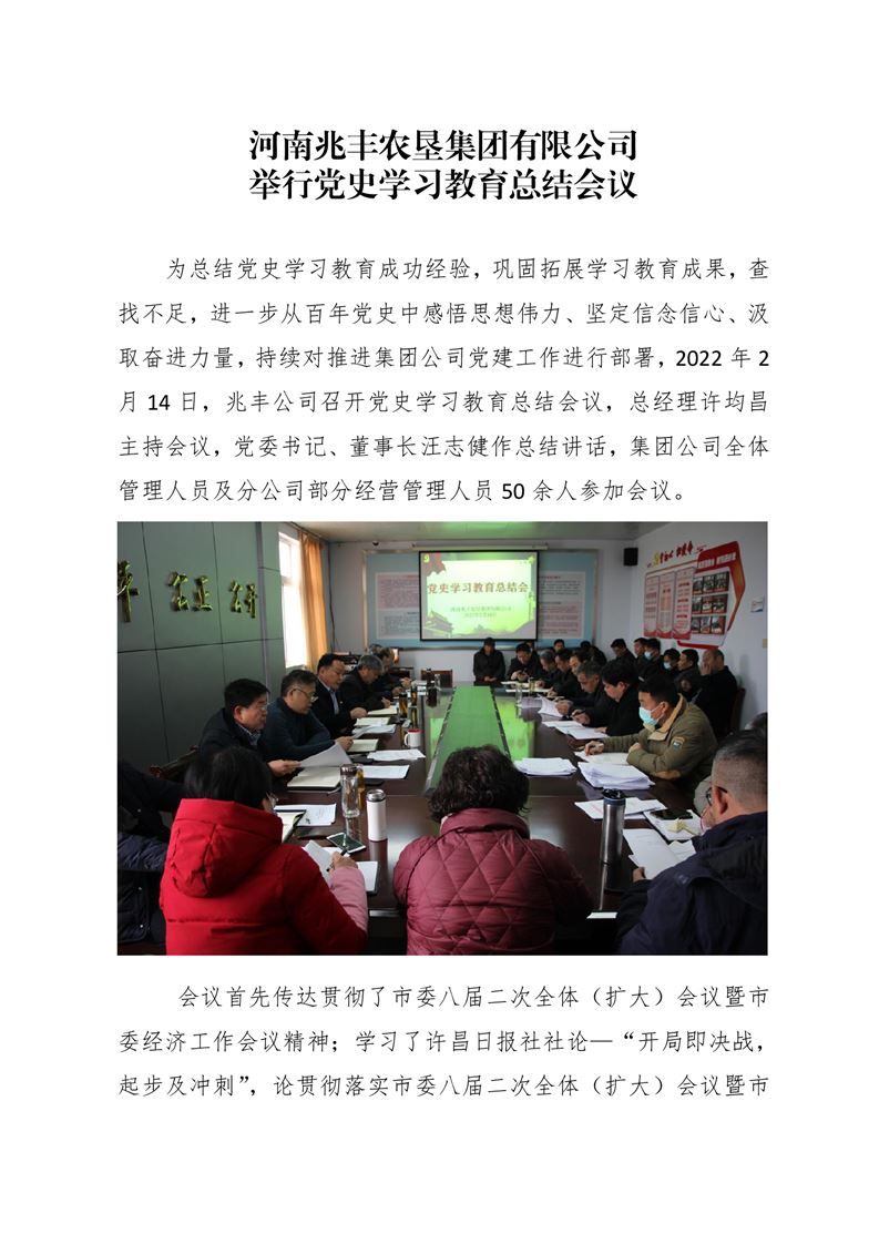 · 河南兆豐農墾集團有限公司 舉行黨史學習教育總結會議