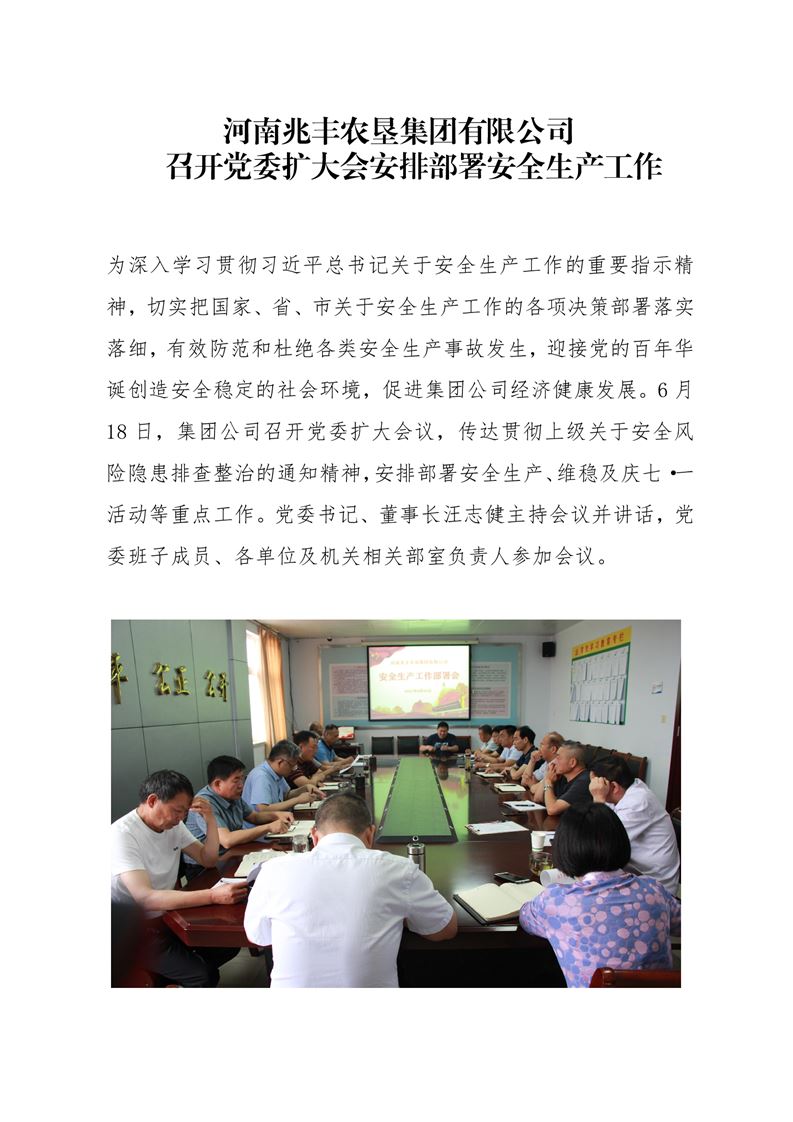 · 河南兆豐農墾集團有限公司 召開黨委擴大會安排部署安全生產工作
