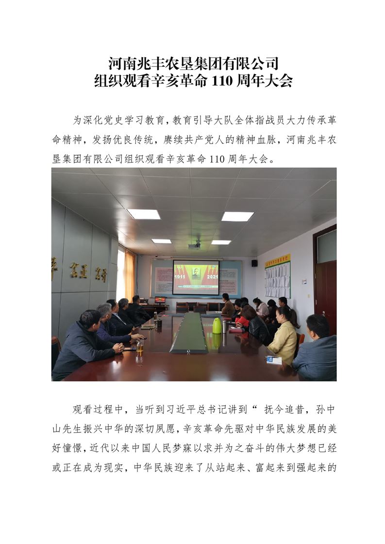 · 河南兆豐農墾集團有限公司 組織觀看辛亥革命110周年大會