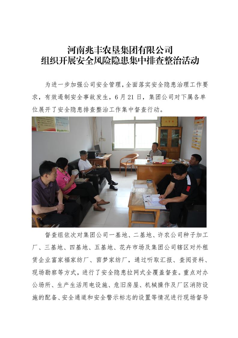 · 河南兆豐農(nóng)墾集團(tuán)有限公司 組織開(kāi)展安全風(fēng)險(xiǎn)隱患集中排查整治活動(dòng)