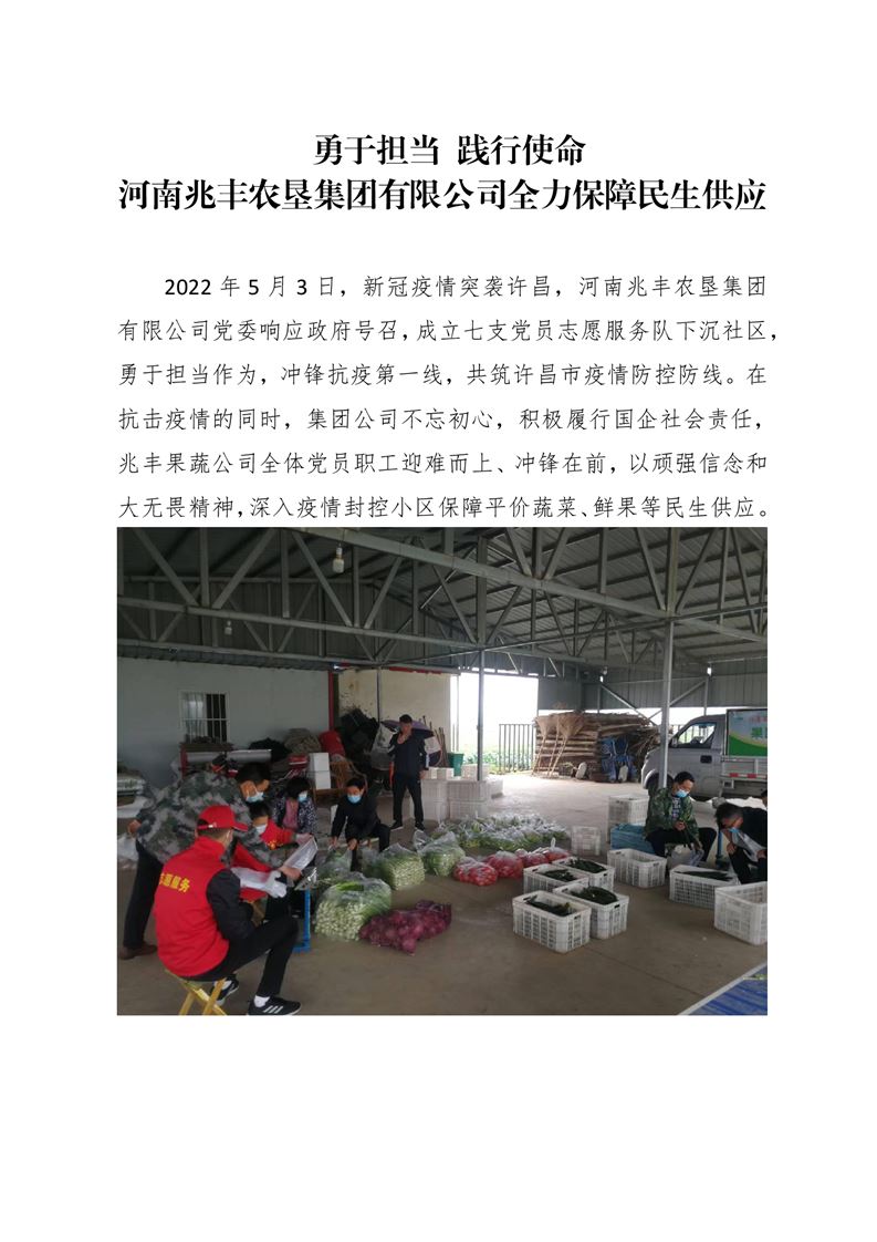 · 勇于擔當 踐行使命 河南兆豐農墾集團有限公司全力保障民生供應
