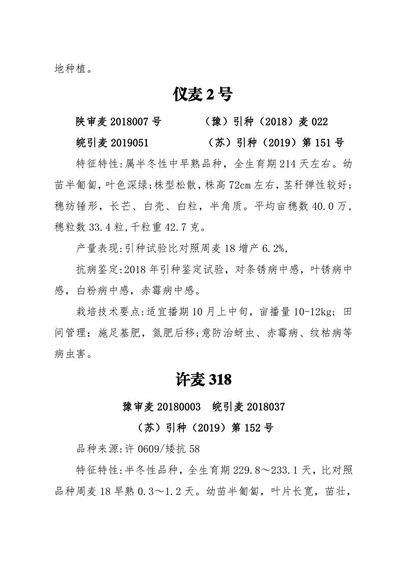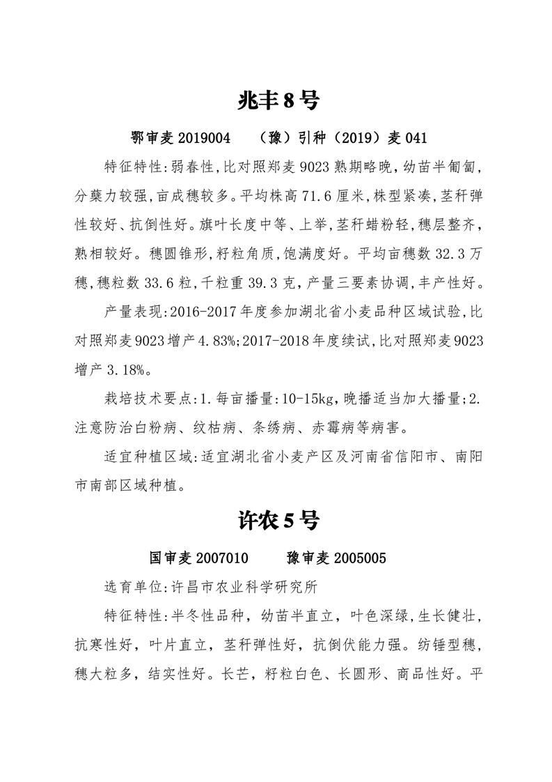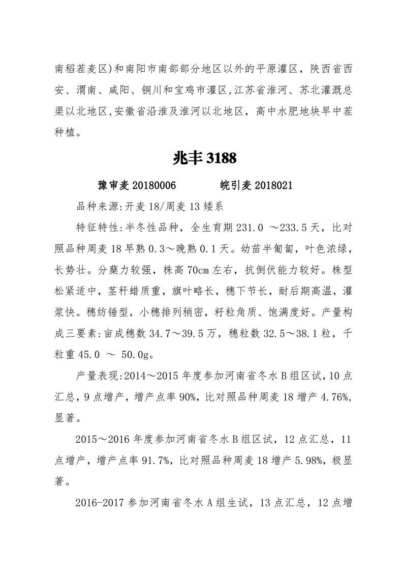 2021年河南省兆豐種業(yè)公司小麥可供品種