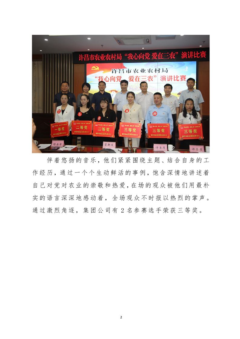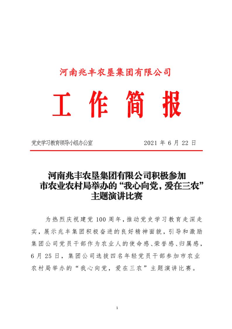 · 河南兆豐農墾集團有限公司 積極參加市農業農村局舉辦的“我心向黨,愛在三農”主題演講比賽