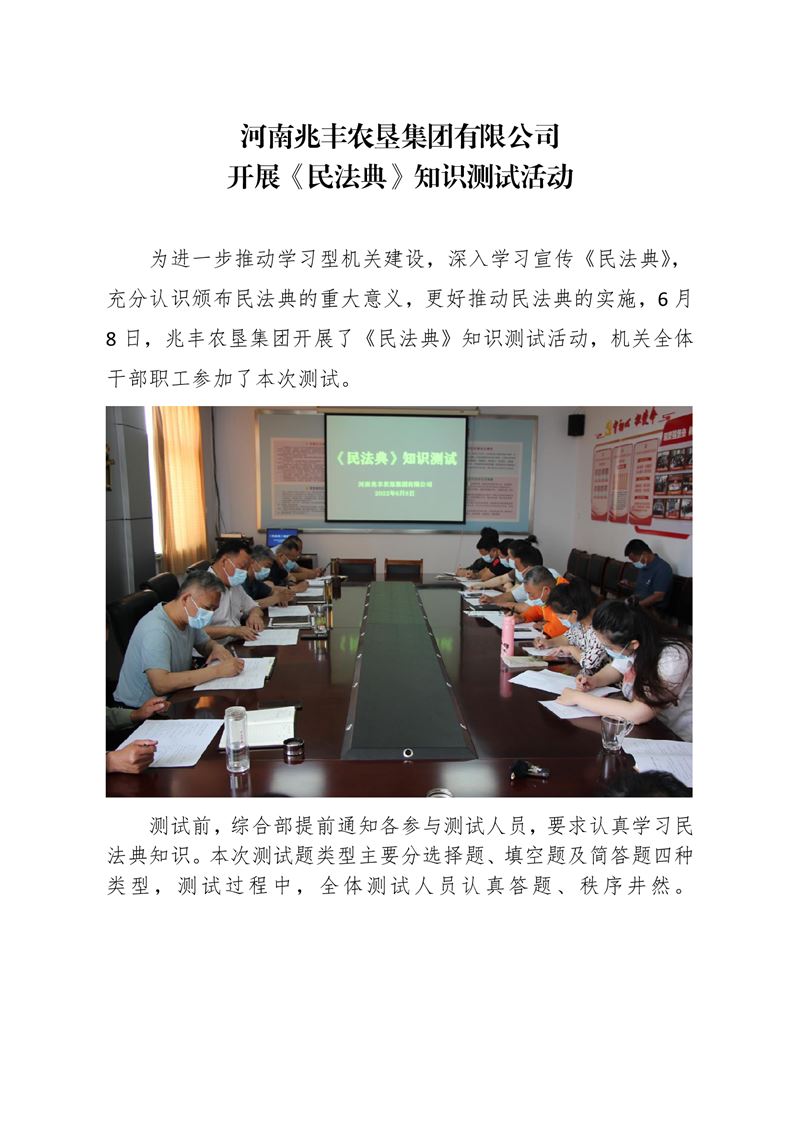 · 河南兆豐農(nóng)墾集團有限公司 開展《民法典》知識測試活動