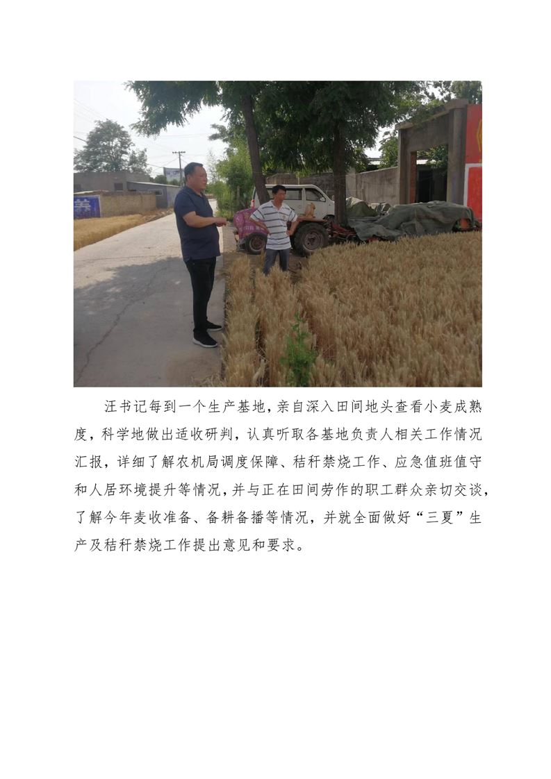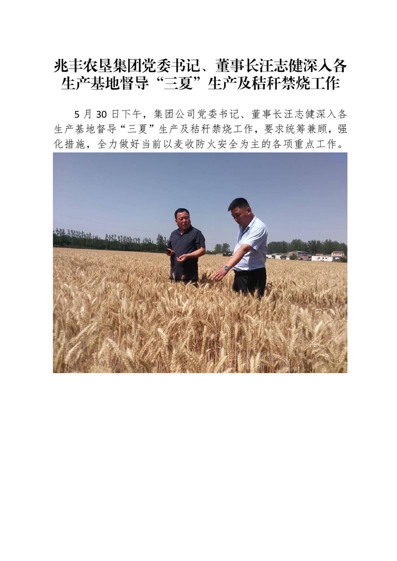 · 河南兆豐農墾集團有限公司黨委書記、董事長汪志健深入各生產基地督導“三夏”生產及秸稈禁燒工作