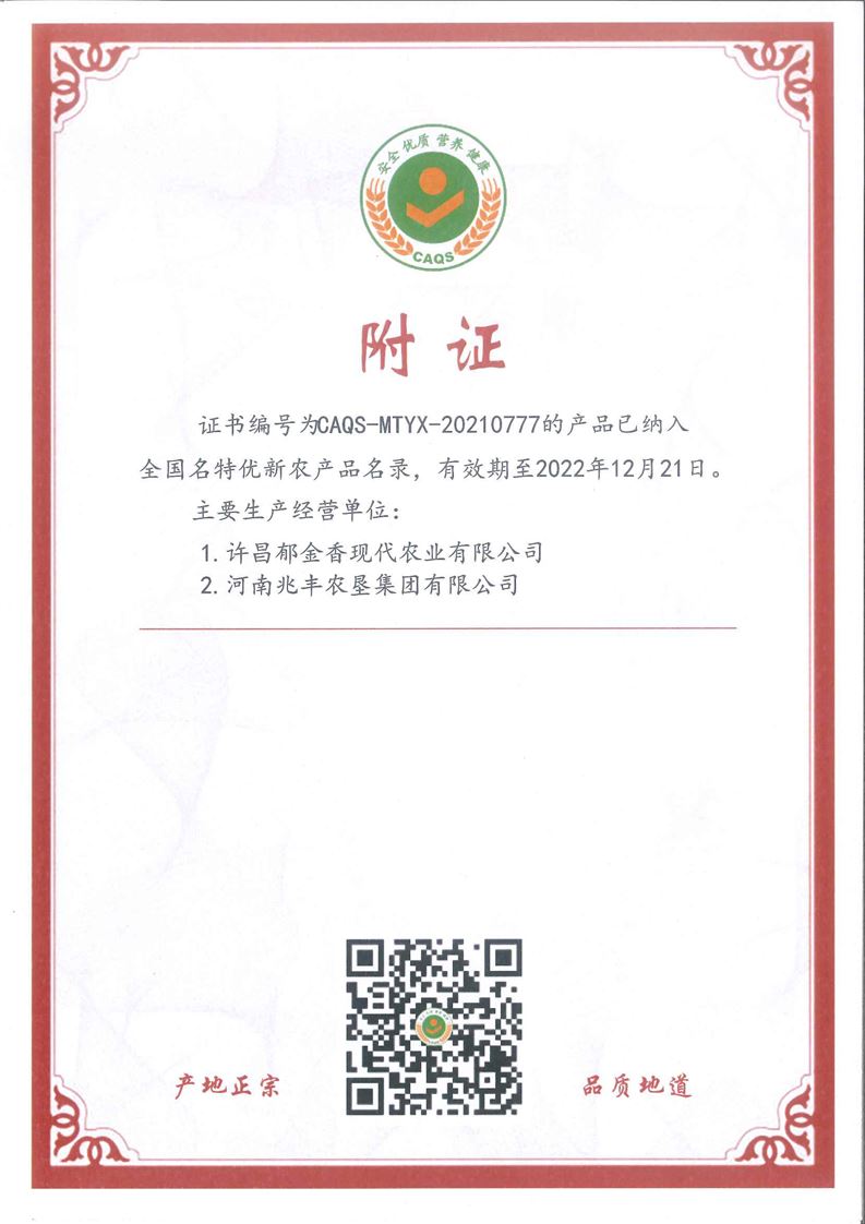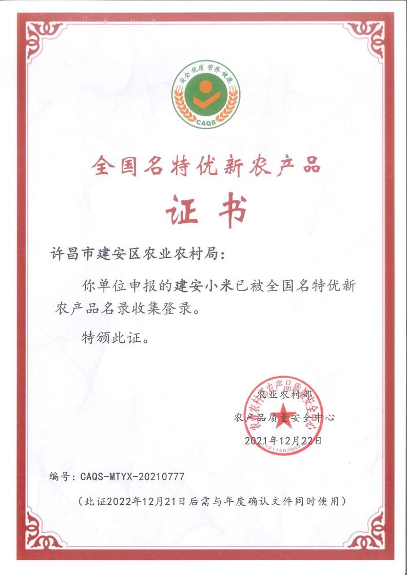 · 祝賀河南兆豐農(nóng)墾集團(tuán)有限公司 申報(bào)的“建安小米”被全國(guó)名特優(yōu)新農(nóng)產(chǎn)品名錄收集登錄