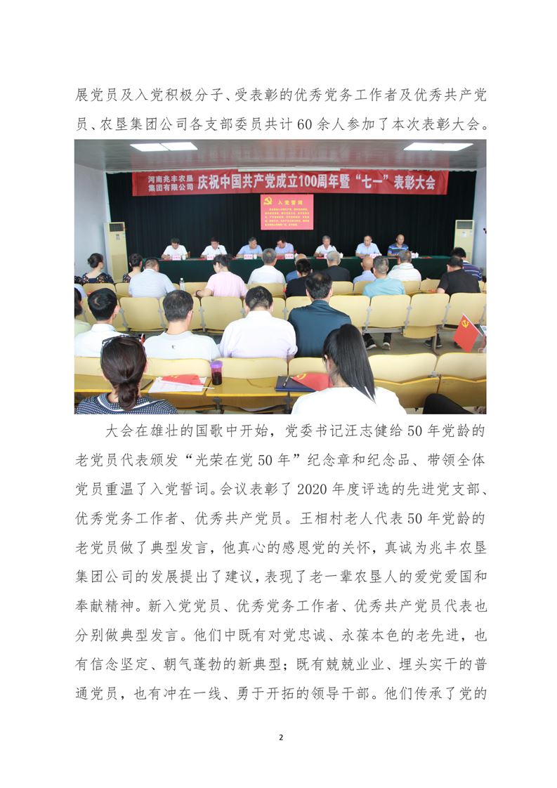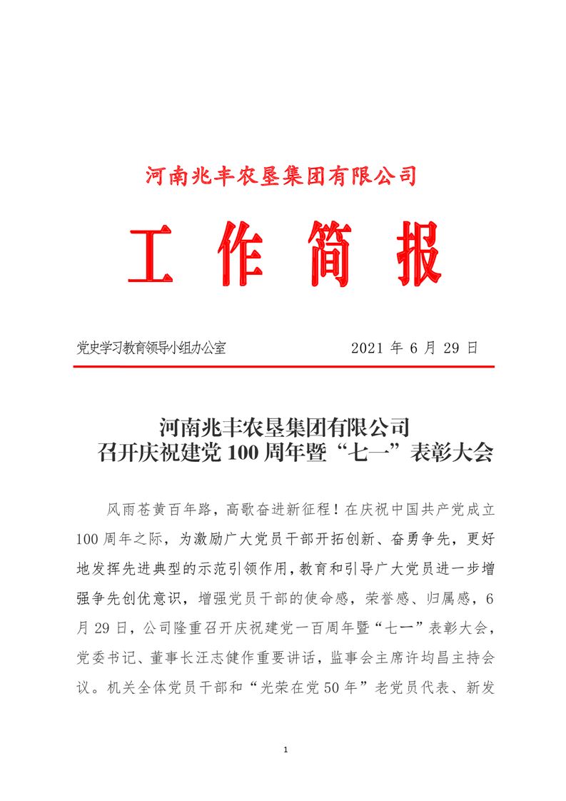 · 河南兆豐農(nóng)墾集團(tuán)有限公司 召開慶祝建黨100周年暨“七一”表彰大會(huì)