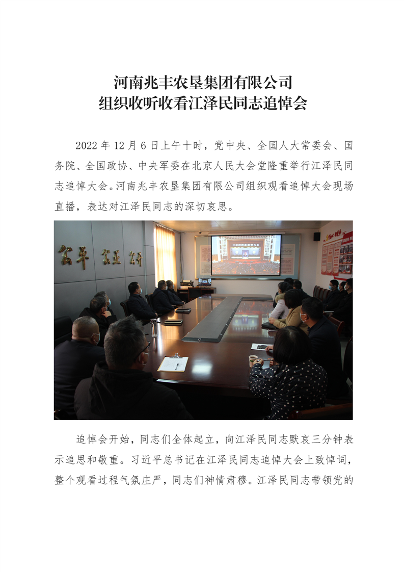 · 河南兆豐農(nóng)墾集團(tuán)有限公司 組織收聽(tīng)收看江澤民同志追悼會(huì)