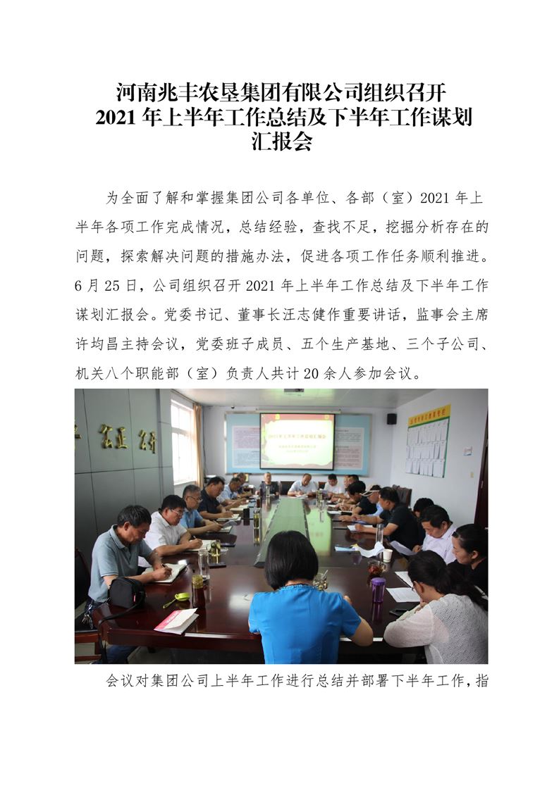· 河南兆豐農墾集團有限公司 組織召開2021年上半年工作總結及下半年工作謀劃 匯報會