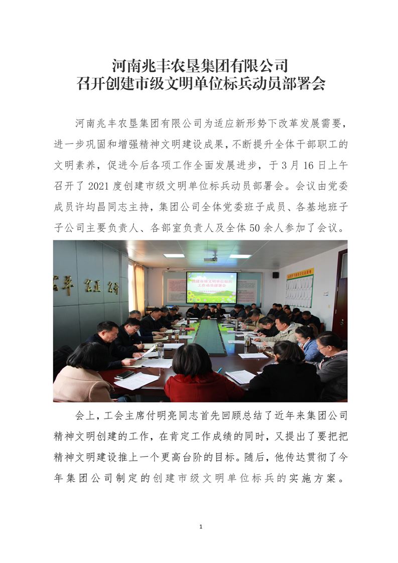 · 河南兆豐農墾集團有限公司 召開創建市級文明單位標兵動員部署會