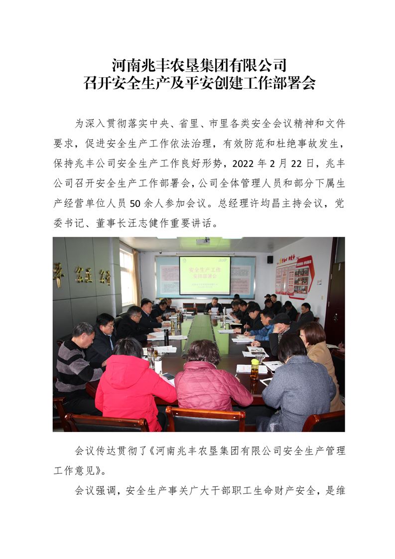 · 河南兆豐農墾集團有限公司 召開安全生產及平安創建工作部署會