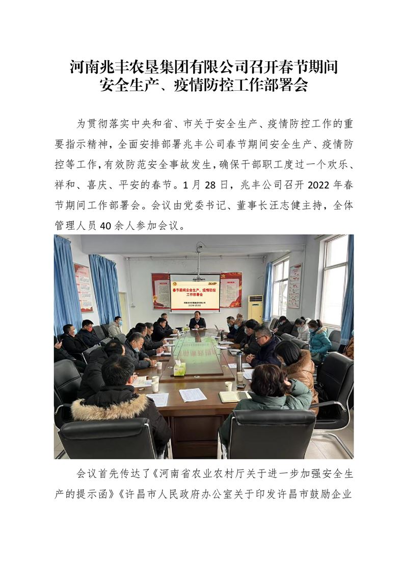 · 河南兆豐農墾集團有限公司 召開春節期間 安全生產、疫情防控工作部署會