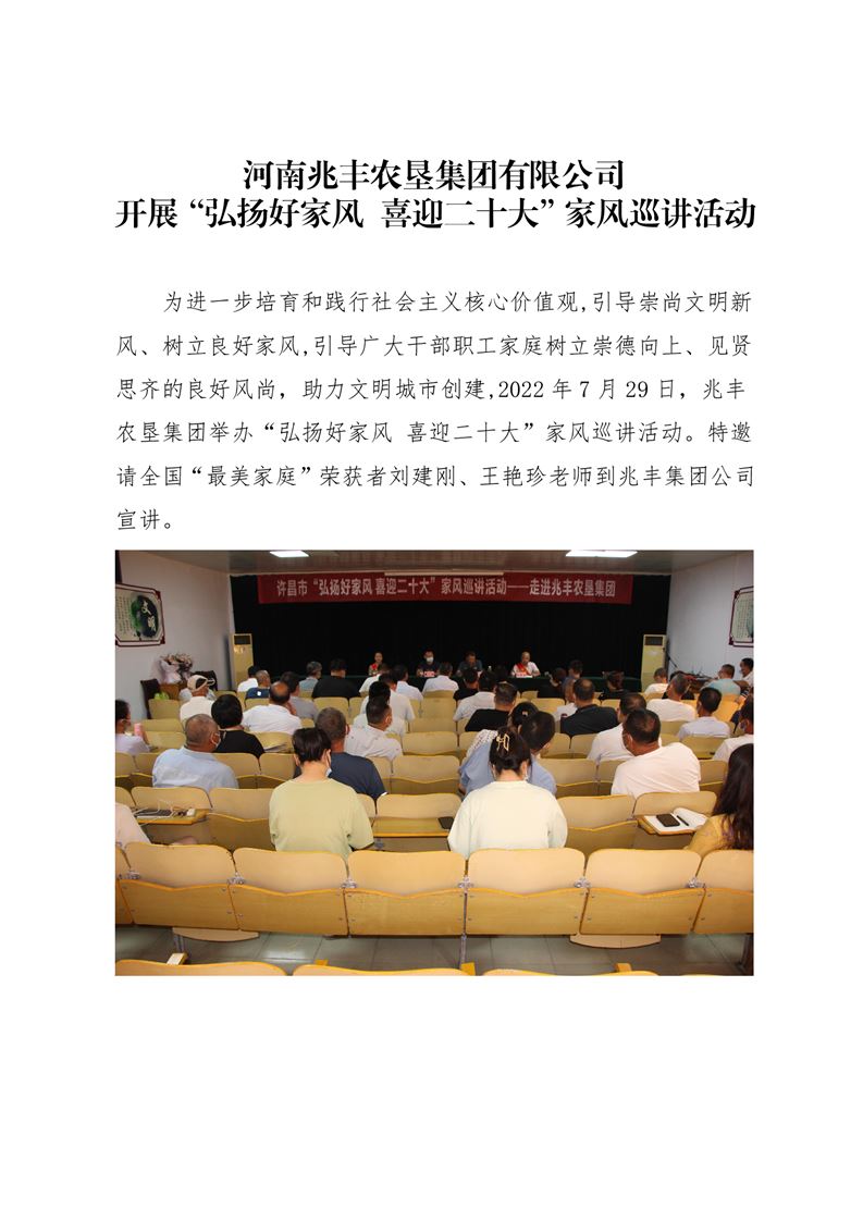 · 河南兆豐農墾集團有限公司 開展“弘揚好家風 喜迎二十大”家風巡講活動
